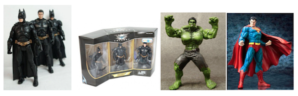 Misalnya saja mainan Batman Trilogy Movie Master, HULK, Superman :