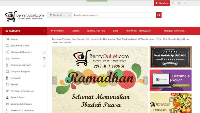 Salah satu marketplace Indonesia yaitu BerryOutlet pun menyediakan wadah baru sebagai tempat berkumpulnya penjual dan pembeli secara online di Indonesia. Sebagai marketplace pastinya seller yang ada di BerryOutlet pun beragam sehingga memungkinkan pembeli bisa leluasa memilih barang yang diinginkan baik kebutuhan pokok, elektronik, mainan, fashion, dan lainnya.
