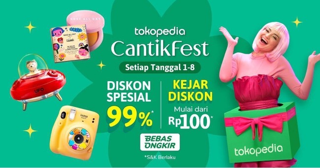 Tokopedia bakal memberikan diskon hingga 99% untuk kamu di Tokopedia Cantik Fest. Kamu bisa mendapatkan diskon hingga 99% dari bermacam brand pilihan pada masa Tokopedia Cantik Fest berlangsung.