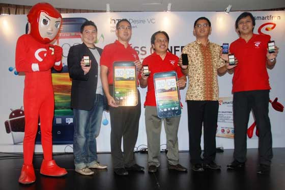 (Kiri â Kanan) Djunadi Satrio (Director of Marketing HTC Indonesia), Roberto Saputra (Head of Brand & Marcomm Smartfren), Merza Fachys (Direktur TeknikSmartfren), Agus Sugiharto (Country Manager HTC Indonesia), & Niels Uffie (Division Head of High-End Product Smartfren) saat meresmikan peluncuran Smartfren HTC Desire VC (18/7) di Jakarta.
