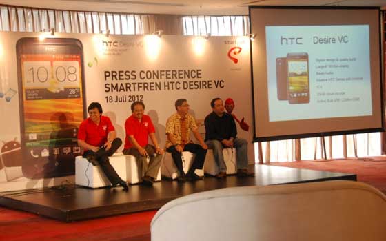 âHTC Desire VC merupakan smartphone dual-SIM CDMA-GSM HTC pertama yang masuk pasar Indonesia. Model ini kami hadirkan untuk menjawab permintaan masyarakat dan kami optimis dengan peluncuran ini. Dari segi layanan data, CDMA memiliki potensi besar dengan kualitas yang mumpuni di Indonesia. Dalam hal ini, kami melihat komitmen tinggi Smartfren sebagai penyedia layanan data sehingga sesuai dengan produk yang kami luncurkan ini,â ujar Djunadi Satrio, Director of Marketing HTC Indonesia.