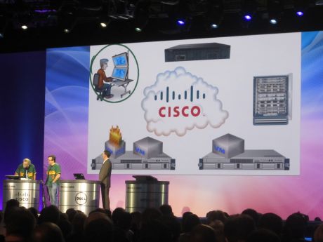 Cisco, salah satu mitra VMware pun tak mau kalah menampilkan persentasi dengan bernyanyi jingle tentang beralih ke cloud seperti lagu anak-anak. Tampak animasi kartun lucu mengiringi selama persentasi sehingga menyegarkan suasana.