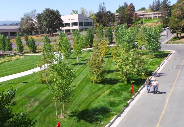 Bangunan-bangunannya rata-rata hanya beberapa tingkat, bukan berupa gedung-gedung tinggi dan terpisah pisah satu sama lain, di antara padang rumput dan berbagai jenis pohon. Di beberapa tempat, disediakan kursi untuk sekadar melepas lelah atau berinteraksi antara para karyawan.