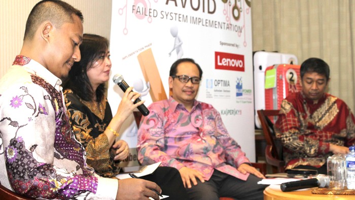 Di sesi pertama seminar, Eko Indrajit selaku IT Practitioner and President Association of Higher Learning Institution in Computing and IT, mempresentasikan aspek-aspek penting yang harus diperhatikan dalam mengimplementasi sebuah sistem baru.