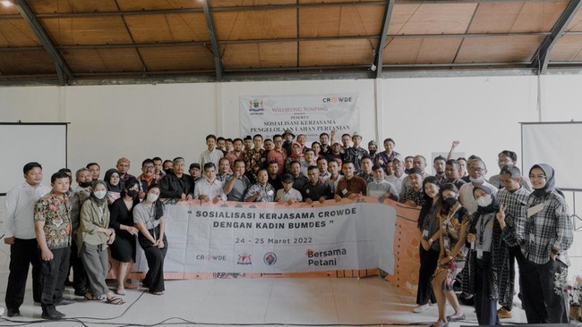 "Crowde telah menandatangani perjanjian kerjasama bersama Kamar Dagang dan Industri (KADIN) dan Badan Usaha Milik Desa (BUMDes) pada 8 Desember 2021. Saat ini, kami terus beroperasi untuk melakukan sosialisasi yang luas kepada para petani, terutama untuk mengenalkan Crowde dan potensi kerjasama agar bisa mengembangkan ekonomi pertanian di pedesaan," ujar Yohanes Sugihtononugroho, CEO & Co-Founder Crowde, dalam keterangan yang diterima detikINET, Jumat (1/4/2022).