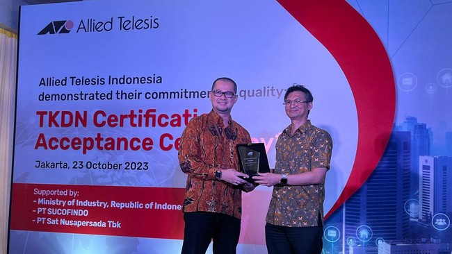 "Kami amat senang dan bangga dapat mendukung program pemerintah dengan mendapatkan sertifikasi TKDN, yang mana hal ini merupakan suatu bentuk komitmen Telesis untuk memacu pertumbuhan ekonomi domestik Indonesia dengan menciptakan lapangan kerja baru dan menyediakan transfer teknologi," kata Beng Santosa, Country Lead Allied Telesis Indonesia, dalam keterangan yang diterima detikINET.