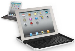 Case keyboard ini terbuat dari alumunium dengan berbagai kegunaan. Ia bisa difungsikan sebagai stand dan keyboard nirkabel untuk iPad 2, baik dalam mode landscape ataupun portrait.