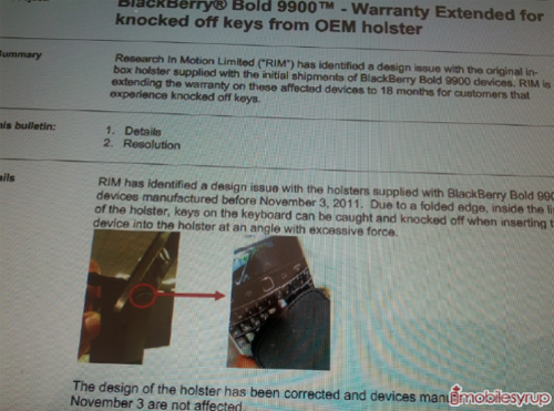 Tetapi jangan khawatir, tidak semua pouch BlackBerry 9900 kena masalah tersebut. Dimana yang harus diperhatikan adalah apabila pembeliannya sebelum 3 November 2011 yang berarti itu adalah produksi paling awal.