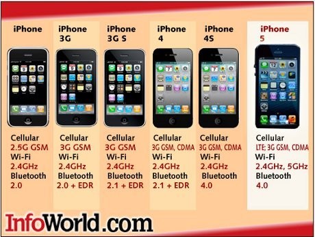 β’ iPhone 5: LTE and 3G GSM and CDMA cellular, 2.4GHz and 5GHz Wi-Fi, Bluetooth 4.0