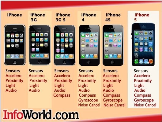 β’ iPhone 5: Gyroscope, noise cancellation, compass, accelerometer, proximity, ambient light, 3-point microphone