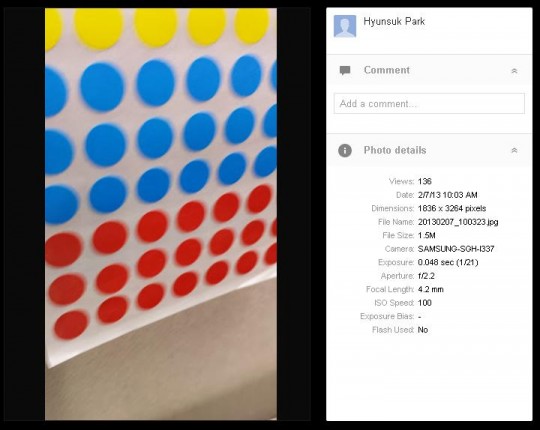 Dikutip detikINET dari Slashgear, Jumat (8/2/2013), salah satu gambar yang di-upload oleh seseorang akun bernama Hyunsu Park, tertera informasi detail mengenai foto dihasilkan.