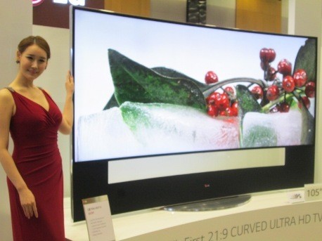 LG memamerkan TV raksasa melengkung yang diklaim pertama di dunia. Ukurannya mencapai 105 inchi dan memiliki resolusi diatas Ultra High Definition (Ultra HD). Seperti apa?