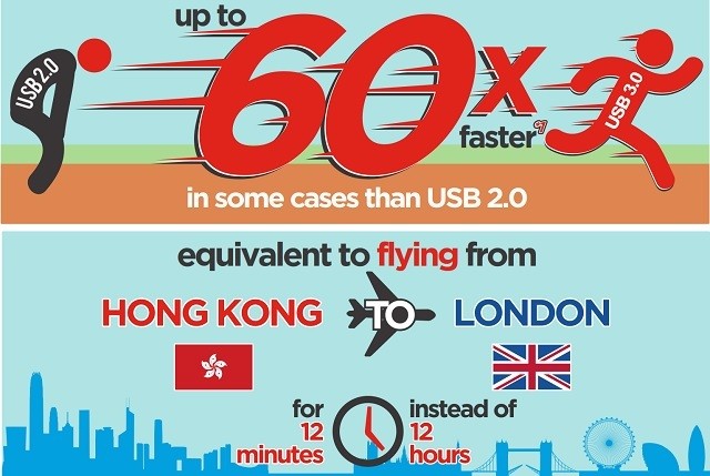 Tapi mari kita lihat kecepatannya. Jelasnya, berapa tingkat kecepatan yang kita bicarakan di sini? Yah, katakan saja USB 3.0 tidak hanya cepat, tetapi sangat cepat! Hingga 60 kali lebih cepat dalam beberapa kasus dibandingkan USB 2.01.