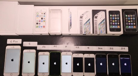 Pengujian pertama adalah mengetahui seberapa cepat jajaran generasi iPhone sejak iPhone 2G sampai iPhone 6 Plus melalui proses booting.