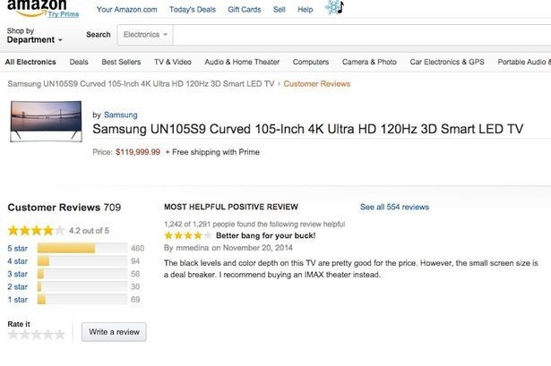 "Sungguh televisi yang hebat. Ketika memutuskan apakah harus membiayai kuliah anakku atau beli televisi ini, itu adalah keputusan mudah. Sekarang anakku bisa nonton televisi ini sepulang kerja di restoran cepat saji dan bahagia seperti aku," tulis yang lain.