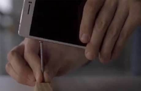 Bayangkan, dalam video berdurasi 1 menit 11 detik, Oppo R5 dijadikan pisau untuk memotong satu buah apel. Tak cuma itu, bahkan ponsel ini juga sanggup membelah satu ukuran besar semangka.