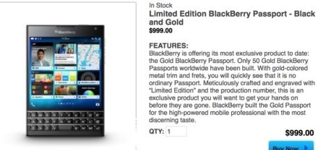 Sejatinya BlackBerry Passport dengan kelir emas telah lebih dulu ditawarkan oleh pihak ketiga, salah satunya adalah Mobogenie. Tapi Blackberry sepertinya tak mau kalah, karena perusahaan Kanada ini akhirnya juga merilis Blackberry Passport besutannya sendiri.