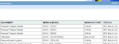 Di situs Kominfo, ada tiga model ponsel Sony yang statusnya masuk balai uji untuk mendapatkan sertifikasi. Nomor modelnya adalah Sony E5333, Sony E6533 dan Sony E2353. Ketiganya dibuat di China.