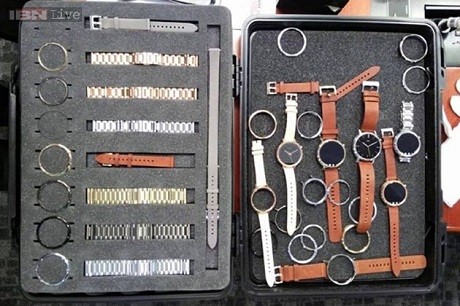 Dalam gambar itu terlihat sebuah koper yang berisikan bermacam rangka jam tangan berbentuk bulat, lengkap dengan bermacam talinya, baik yang terbuat dari bahan kulit ataupun metal.