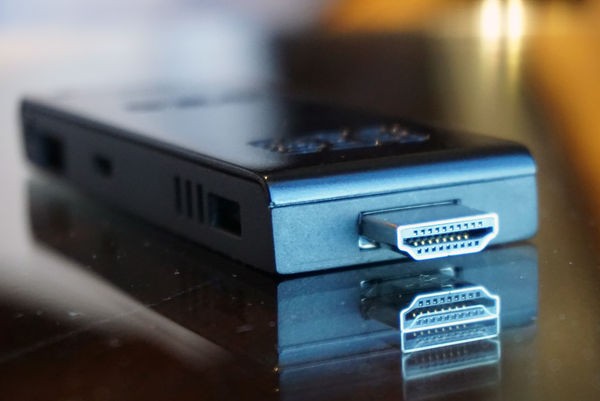 Intel Compute Stick tampil layaknya sebuah flashdisk, namun bagian ujungnya adalah HDMI. Jadi pengguna tinggal menancapkannya ke layar yang punya port HDMI semisal TV, seketika layar tersebut berubah jadi perangkat pintar.