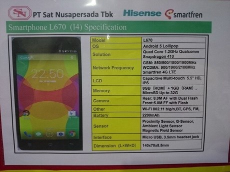 Saat detikINET mengunjungi pabrik pembuatan ponsel 4G Smartfren di PT Sat Nusapersada Tbk pada Rabu (27/5/2015) terungkap dengan jelas seperti apa spesifikasi kedua ponsel tersebut dalam sebuah lembar kertas yang ditempel di ruang perakitan.