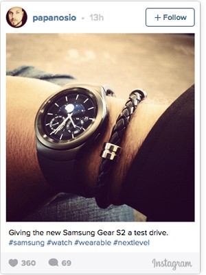 Foto yang ditampilkan tak sekadar render melainkan smartwatch sungguhan. Vice President Samsung Design Dennis Miloseski memposting fotonya mengenakan Gear S2 di akun Instagram pribadinya."Giving the Gear S2 a test drive," demikian caption pada foto di akun Instagram bernama @papanoslo itu.