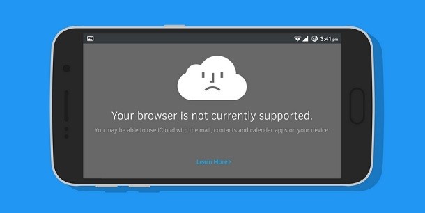 Untuk menggunakan fitur Find My iPhone, kita harus mengakses iCloud.com. Sayangnya, kita tak bisa membukanya di browser Android. Tak hanya Chrome, tapi juga Opera, Firefox, APUS Browser dan CM Browser.