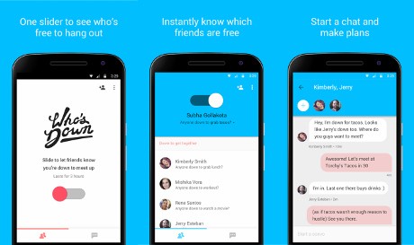 Diberi nama Who's Down, aplikasi baru milik Google ini memungkinkan Anda untuk mencari tahu atau mengajak pengguna lain untuk sekadar hang out, nonton, atau bahkan kencan. Jadi, kini Anda tak perlu takut tidak punya teman nongkrong. Bisa dibilang aplikasi ini cocok buat yang jomblo, meski sebenarnya siapapun boleh menggunakannya.