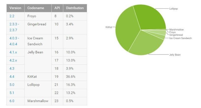 Itu terbukti berdasarkan data statistik Google beberapa waktu lalu, di mana adopsi sistem operasi Android 4.4 KitKat ternyata masih mendominasi perangkat Android secara global. Terlihat bahwa Android dengan simbol coklat batang itu masih memimpin dengan pangsa pasar 36,6% terhitung sampai bulan Desember 2015.
