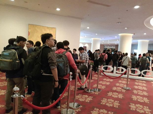 -. Antrean media yang datang sudah mengular di peluncuran Oppo F1.