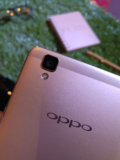 -.Berkat bodi metal dengan paduan silk metal dan zircon sand, desain Oppo F1 memang jadi kental nuansa premium