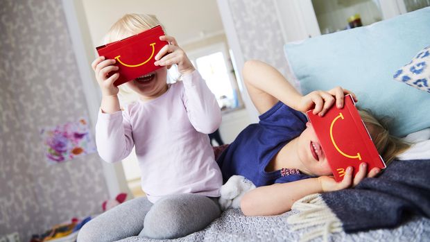 Restoran cepat saji asal Amerika Serikat itu mengumumkan headset virtual reality bernama Happy Goggles. Bila diperhatikan Happy Goggles mirip dengan headset virtual reality Google Cardboard. Hanya saja headset ini terbuat dari kardus paket makanan Happy Meal.
