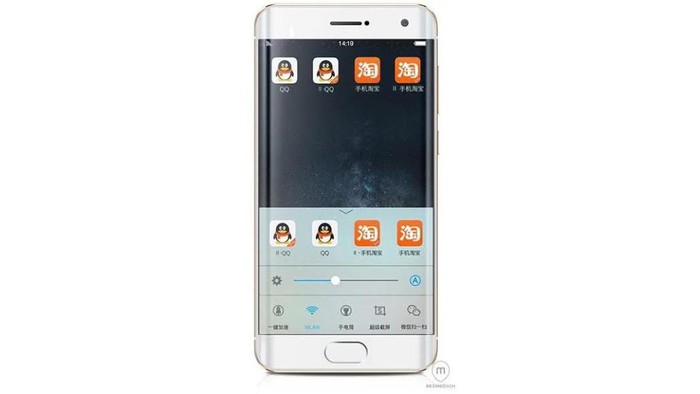 Bagian depan ponsel tersebut berwarna putih. Di pinggiran sisi kanan dan kirinya dibuat melengkung. Tapi tidak sekadar melengkung, layar tersebut punya beberapa fungsi layaknya ponsel Galaxy S7 Edge.
