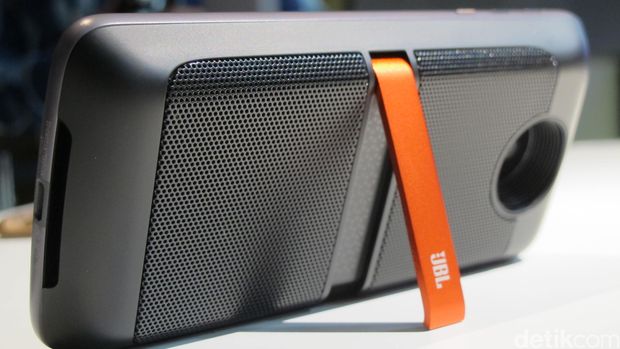 MotoMods yang diperkenalkan dalam TechWorld 2016 berupa speaker JBL dan sebuah proyektor mini. Pemasangannya tinggal snap-on alias ditempelkan begitu saja, dan aksesoris tersebut akan menempel secara magnetik. Penghubungnya adalah 16 pin yang ada di belakang ponsel Moto Z.