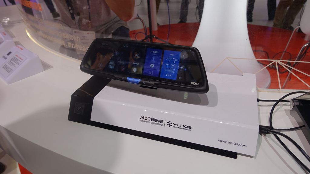 Salah satu menarik perhatian adalah Jado, kaca spion dalam. Tidak seperti kaca spion dalam di mobil yang ada di pasaran saat ini, perangkat satu ini dibuat pintar.