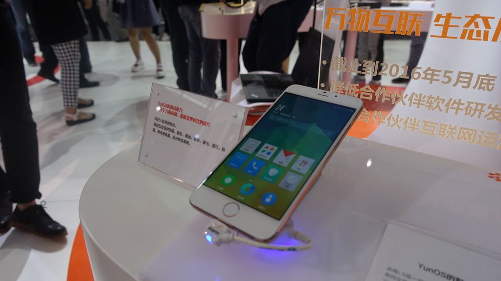 Jajaran ponsel Yun OS pun turut dipamerkan. Ponsel tersebut besutan sejumlah vendor, salah satunya Meizu.