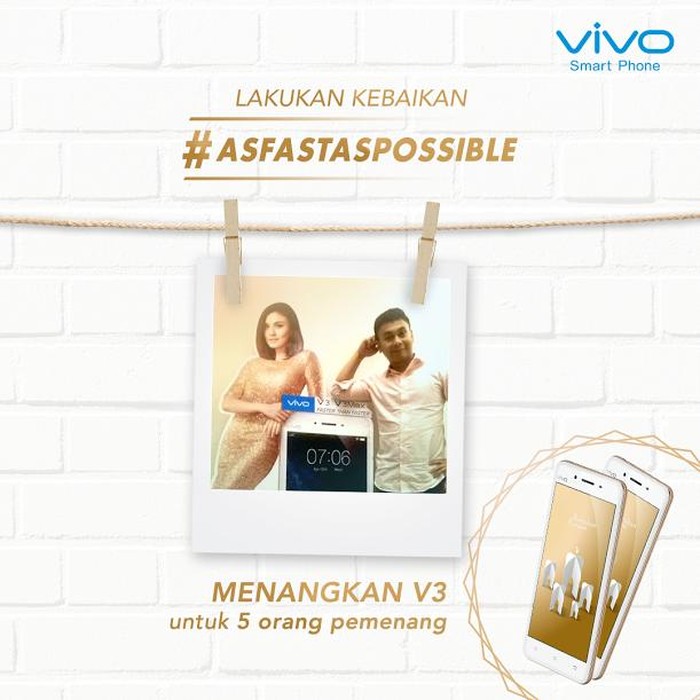Dalam kampanye terbaru, Vivo ingin mengingatkan tentang kepedulian terhadap sesama, terutama pada generasi penerus bangsa. Peduli terhadap sesama dapat dimulai hari ini dan dari diri sendiri. Melalui program #ASFASTASPOSSIBLE di Facebook Vivo Indonesia, Vivo mengajak secepatnya melakukan kebaikan tanpa mengenal batas dan dilakukan secara ikhlas.