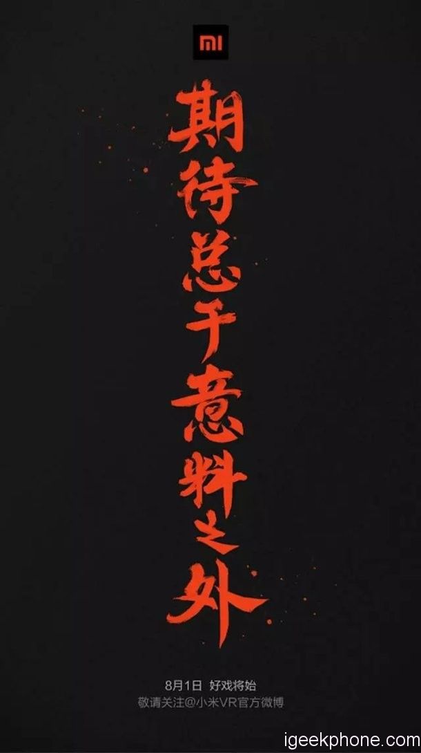 Tapi ketika mata tertuju ke bagian bawahnya, kita akan menemukan keterangan soal VR berikut jadwal acaranya. Tertulis Xiaomi akan meluncurkan perangkat VR pada 1 Agustus.