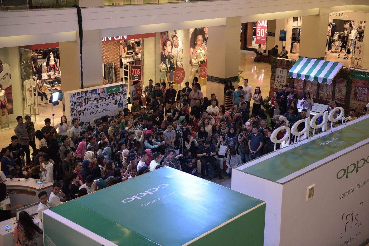 Suasana penjualan perdana Oppo F1S di Mall Kota Kasablanka.