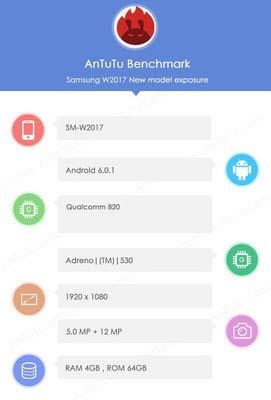 Informasi tersebut diketahui dari hasil benchmark. Sebuah ponsel memiliki kode SM-W2017 muncul di situs Antutu. Varian W diketahui adalah ponsel flip yang dibuat Samsung dan dipasarkan terbatas di China.
