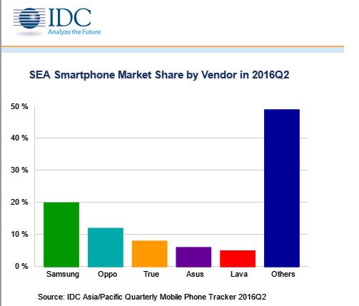 Penelitian itu menyebutkan bahwa ada 28 juta unit smartphone dikapalkan di Asia Tenggara di kuartal II tersebut, naik 18,1% dari kuartal sebelumnya dan 6,5% dari tahun lalu. Negara yang masuk obyek riset IDC ini adalah Indonesia, Malaysia, Myanmar, Filipina, Singapura, Thailand dan Vietnam.