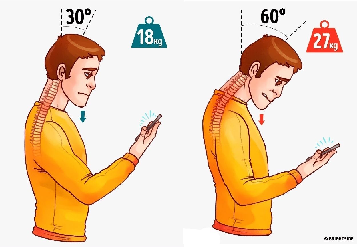 Karena itu disarankan untuk posisi ponsel sedikit dinaikan. Sehingga terhindar dari posisi membungkuk. Ketika menatap layar tersebut, sebaiknya tidak menaikturunkan posisi kepala, tapi menggunakan mata.