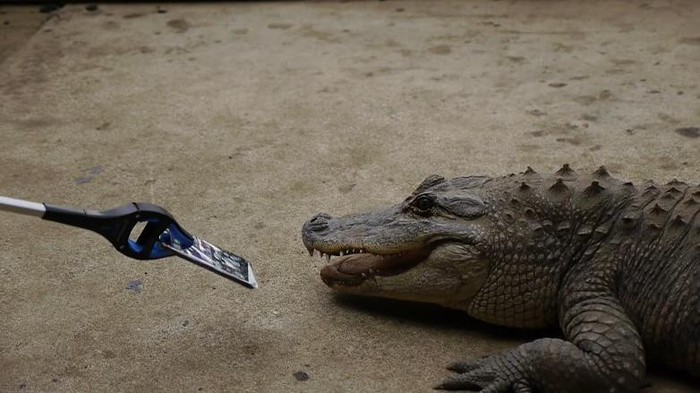 Tapi setelah dipancing, TechRax pun berhasil memasukan umpan iPhone 7 ke dalam mulut aligator yang menganga. Seketika itu juga iPhone tersebut langsung dihantam gigi-giginya alias digigit.