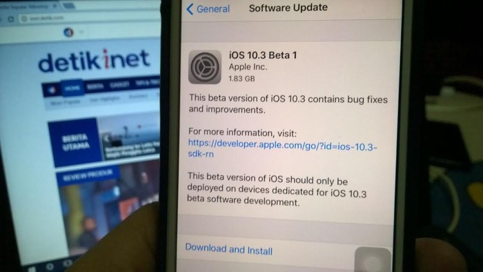 iOS 10.3 akan menjadi mayor update. Saat detikINET mengunduhnya, besar file update ini mencapai 1,8 GB.