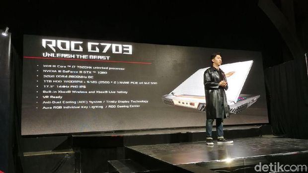 Laptop dimaksud adalah ROG G703. Dengan harga yang mewah, laptop ini tak lepas dari spesifikasi yang mumpuni. Asus mengklaim bahwa laptop termahalnya di awal tahun 2018 ini menjadi laptop gaming pertama dengan layar 144 Hz.