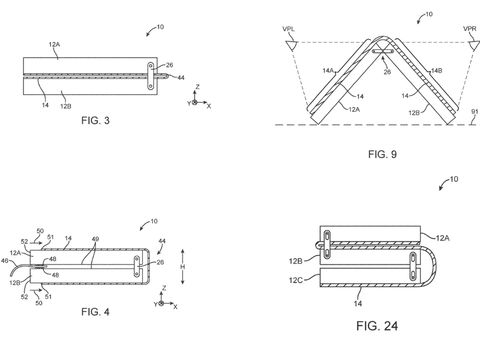Pada Februari 2020, Apple mendapatkan paten untuk perangkat layar lipat dengan mekanisme engsel yang memanfaatkan flap yang bisa bergerak untuk mencegah display menjadi berkerut atau rusak saat dilipat.