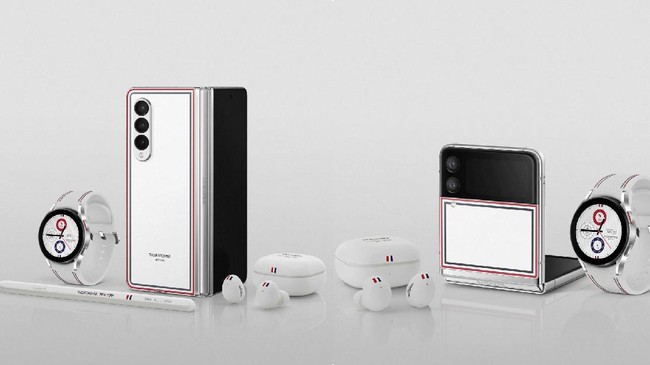Samsung turut menyertakan Galaxy Watch4 Classic, Galaxy Buds2, dan S Pen Pro yang semuanya bertema Thom Browne. Tidak lupa aksesoris perangkat seperti case, wireless charger, kabel, pengisi daya, hingga strap Galaxy Watch dengan nuansa Thom Browne.