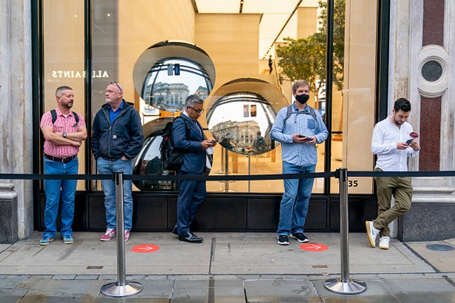 Di Apple Store area Regent Street, London, ada sekitar 30 fanboy membentuk antrean untuk membeli iPhone 13. Tapi ini semua, dibandingkan di masa silam di mana sebagian orang sampai berkemah, antrean itu dirasa kurang semarak.