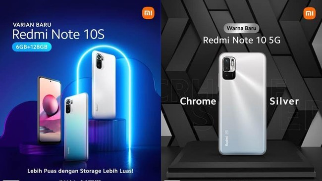 Sementara Redmi Note 10 5G yang diperkenalkan bulan Juli lalu memiliki banyak fitur andalan dengan harga yang terjangkau. Kini HP tersebut punya pilihan warna baru, yakni Chrome Silvern. Pilihan baru ini melengkapi warna yang sudah ada yaitu Aurora Green, Graphite Gray, dan Nighttime Blue.