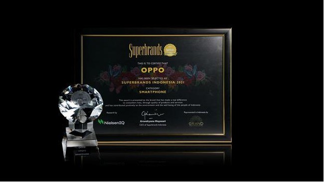 Salah satu merek yang memenangkan penghargaan Superbrands 2021 yaitu OPPO Indonesia di kategori Smartphone, penghargaan ini diraih berdasarkan tahapan riset dan pengesahan secara resmi dari lembaga survei Internasional Nielsen sebagai jaminan terbaik bagi konsumen Indonesia.